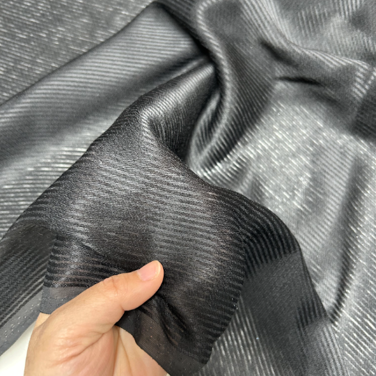 Gasa devoré satinada, con un hermoso diseño listado, de textura muy suave, es translucido y delgado.