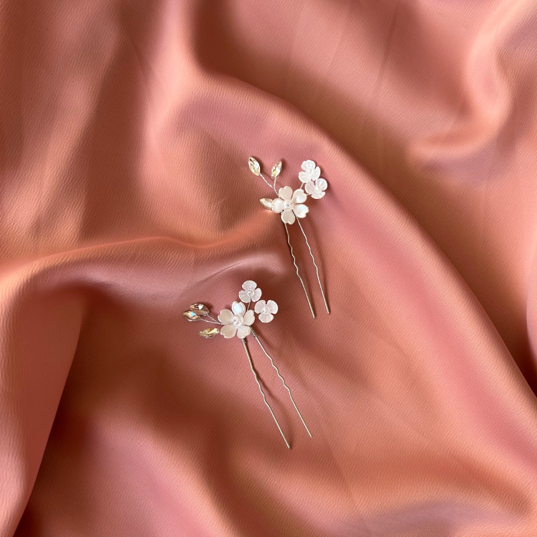 Orquilla de novia con incrustaciones de strass y perlas, en alambre dorado.