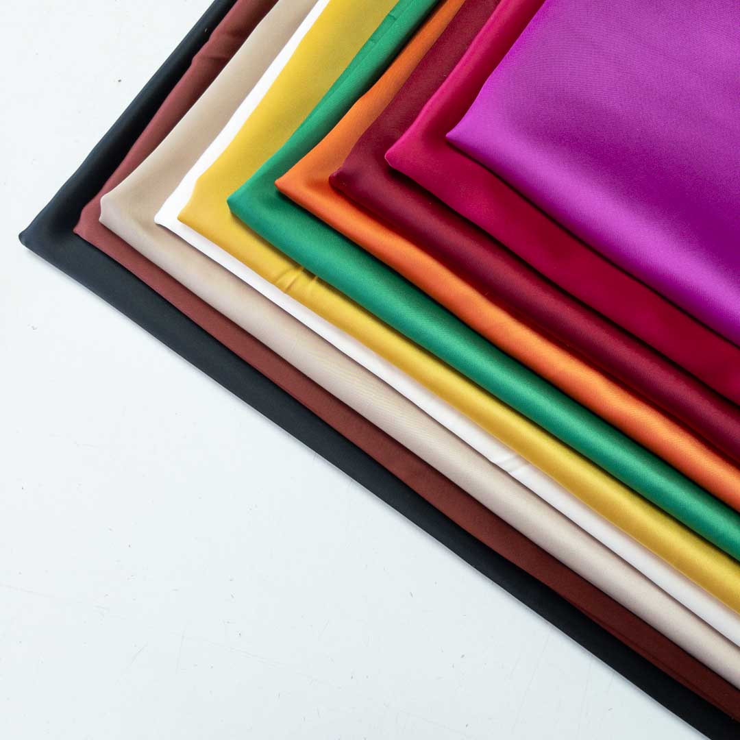 Tejido de satén, con cuerpo y mucha caída. Ideal para la confección de vestidos, tops, faldas de gala o ceremonia, con acabado brillo y satinado.